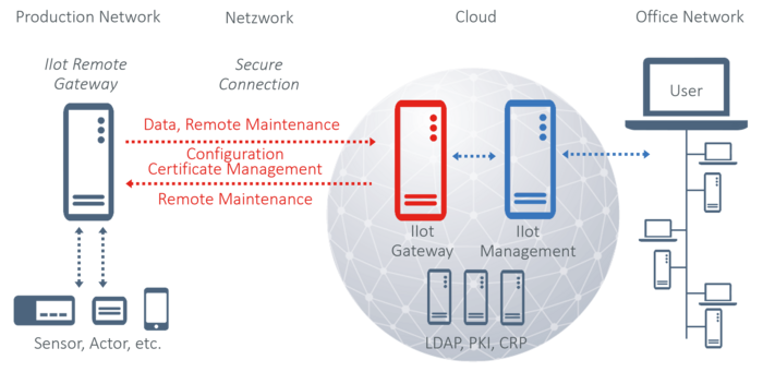 NCP components allow direct communication up to the correct destination through unique temporary IP addresses and authentication data of the gateways and clients (hardware or software-based). A clear remote maintenance concept and risk assessment are essential for remote maintenance solutions in the highly automated IIoT environment.
